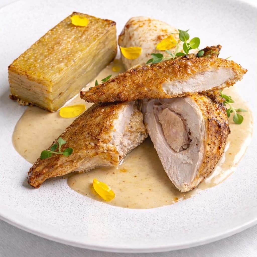 SuprĂŞme de Bresse farci au foie gras